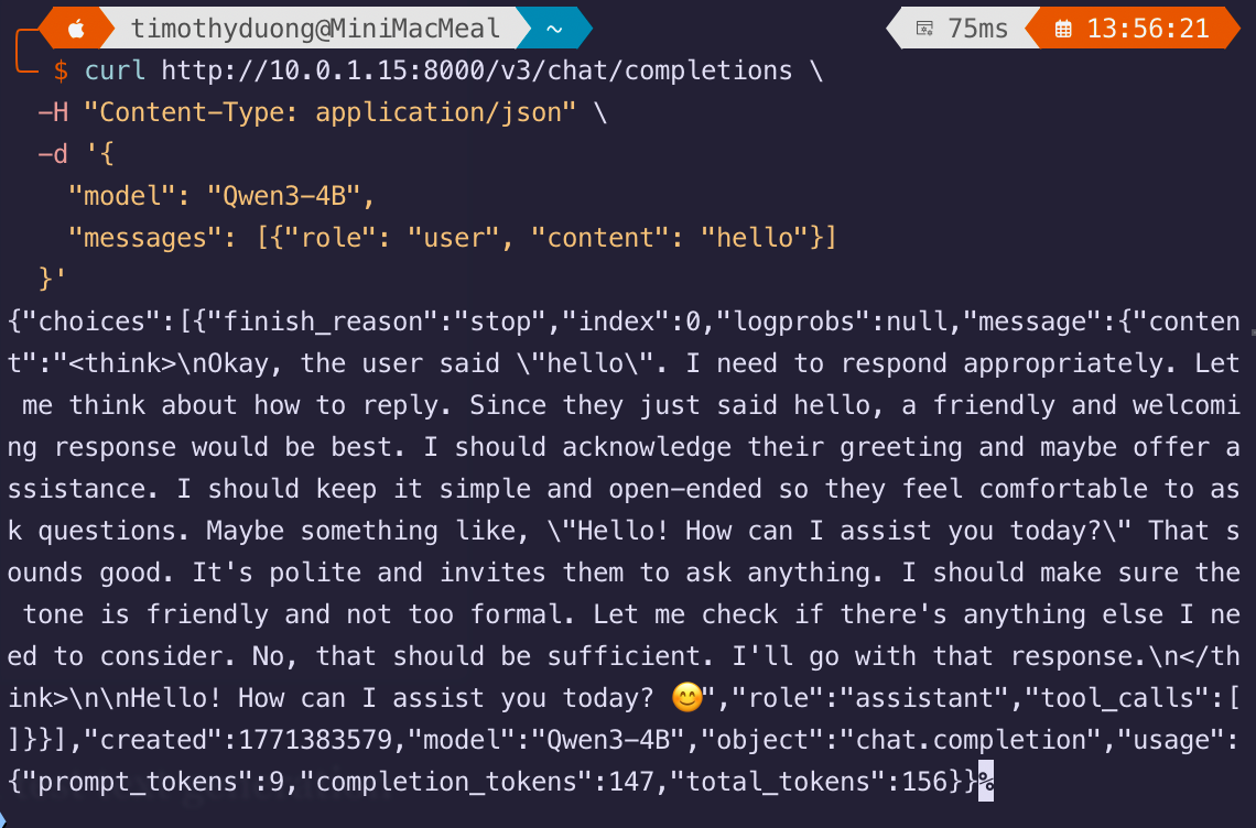 curl http://10.0.1.15:8000/v3/chat/completions \