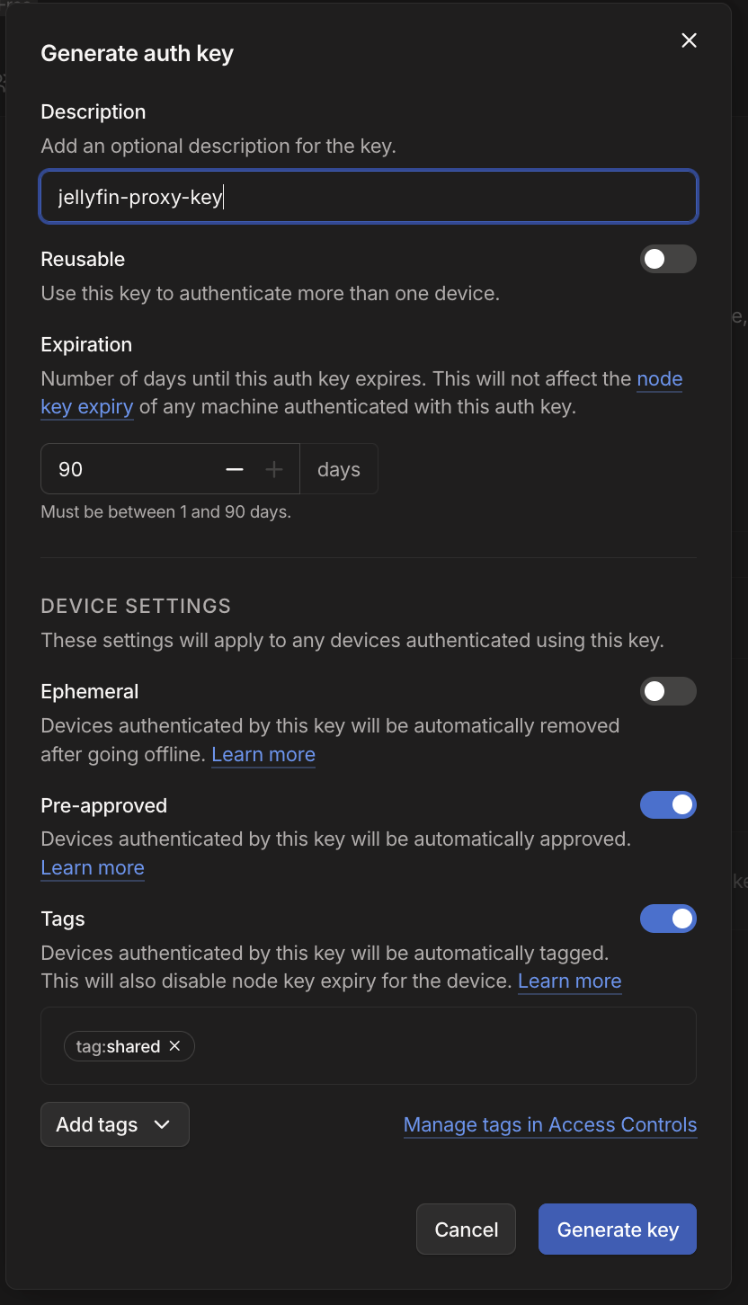 • Description: jellyfin-proxy-key (enter whatever you feel fits)