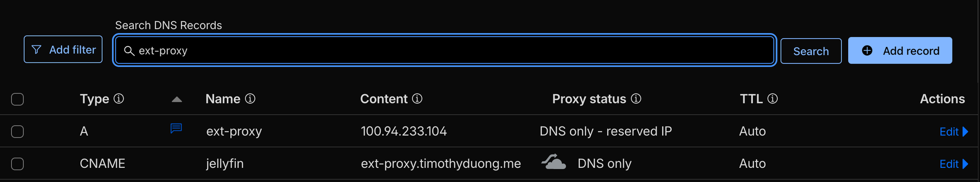1. Load up Cloudflare DNS and create a new DNS A record: